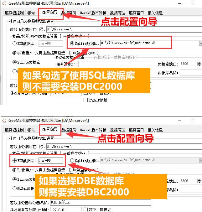 3. GEE引擎打开点击配置向导,如果使用的是sql数据库,则跳过安装DBC2000