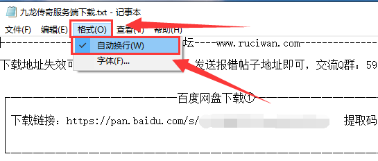 3. 如果查看不到下载地址,要点击文档中的格式,选择自动换行。
