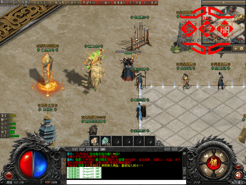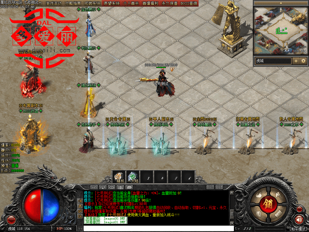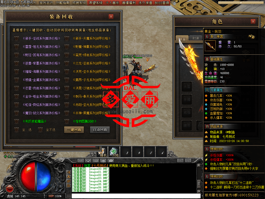 斩月屠龙本服是可以真正做到可以玩的版本 称号=回血,狂=吸血各大地图红BOSS出值点