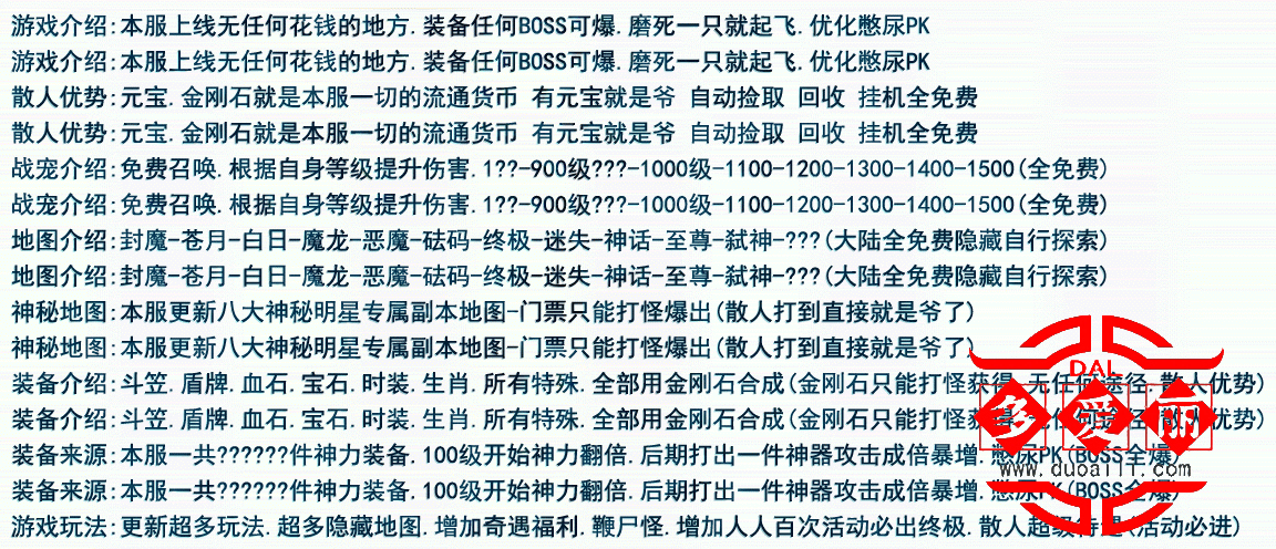 天龙迷失第二季激情单职业版本-带假人光柱-自动回收-多大陆-