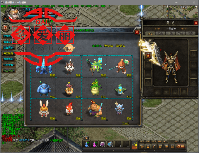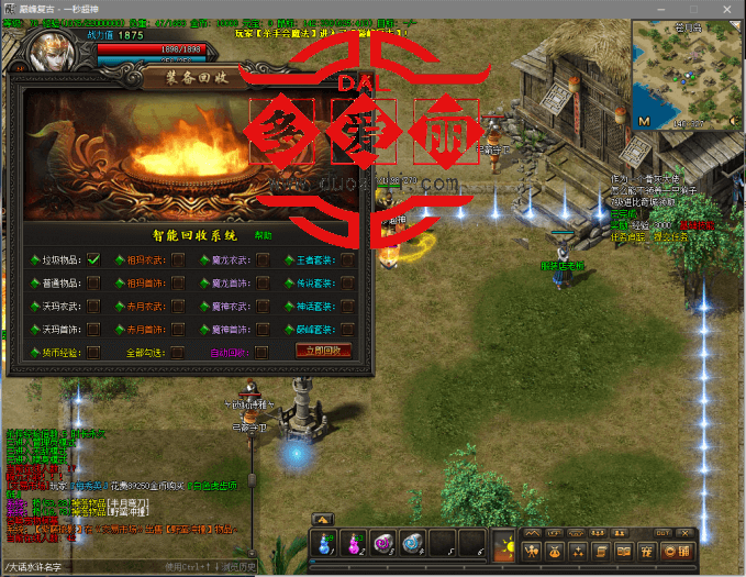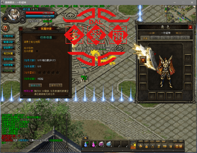2、功能特色:①加入主线剧情任务,对新人玩家非常的友好。②加入每日除魔任务,增加升级乐趣。③加入宠物系统,可以让宠物给你捡装备。④加入装备回收系统,让你的背包清清爽爽。⑤加入称号系统,项链加幸运等小功能,不再一一介绍了,自己在游戏里体验。