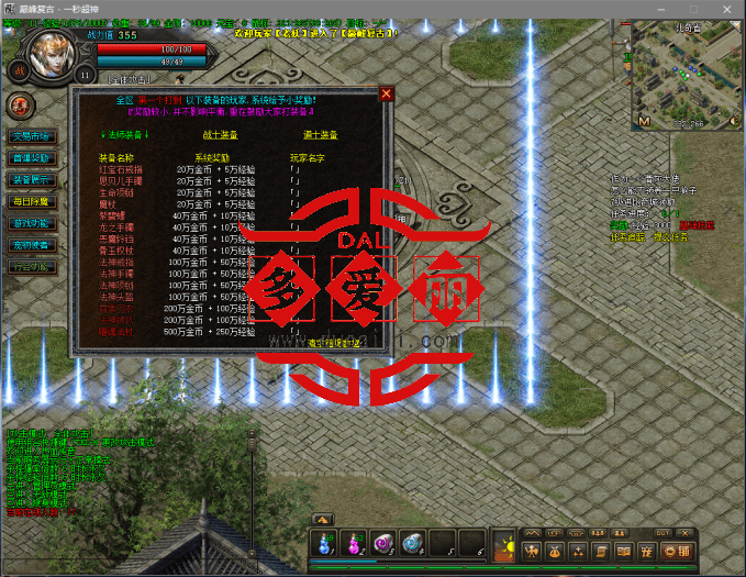 4、关于第二季(还在制作,具体完成时间不清楚):室友说要去找几个当年大学里的朋友再玩一把,问我还有没有兴趣再改第二季,我的回答是‘人多了再说吧’,因为没想好加什么内容,主要能想到的有以下几点:①增加支线任务,主线剧情给金币多,支线给经验多和元宝(支线难度高,需要配合主线根据情况而打)。②精英怪系统:精英怪分为两种,一种是打普通怪有几率出·精英后缀的怪物(此精英怪保存大极品装备),另一种是比奇,盟重,封魔谷,白日门,苍月岛,魔龙城等带◆◆字有颜色名字精英怪(此精英怪爆出有颜色名字变态装备)③变态装备系统:设置了几乎所有装备的变态版,一直到赤月装备和赤月武器衣服(后期可能更新到魔龙装备武器和衣服),每件装备都有不同的被动属性,如图,其中一些还可以往上升级,只有带◆◆颜色名字精怪才能爆出。④各大主城和BOSS地图加入背景音乐,仙剑奇侠传的BGM,怀念经典,各大NPC加入打开音效,所以大家可以把声音打开,完整体验乐趣。⑤加入坐骑系统,并且升级坐骑,可搭配四种坐骑装备,和十二种技能。⑥加入聊天表情系统,纯属1秒爱好,但是挺好玩。⑦加入BOSS查询功能,随时查看BOSS是否刷新。
