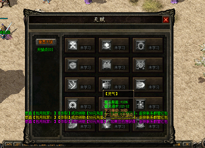 10.个别高级技能需要穿戴装备激活,无技能书产出;例如开天武器激活开天斩;玄天激活裂神符、毒云等
