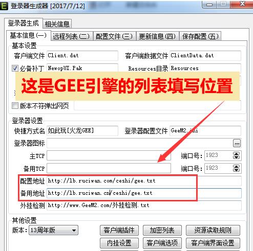 将上面的列表复制到登录器生成器中的列表地址和备份列表的位置。GOM和GEE的位置不同