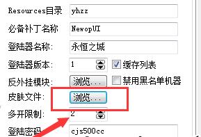 第五:选择皮肤文件,我们GOM引擎使用的是破解版的只能选择服务端中,登录器文件夹里面的皮肤编辑器中的皮肤,其他皮肤无法读取,注意,GEE引擎的皮肤选择在最下方有一个登录器皮肤编辑的按钮,一般不需要选择,默认即可!