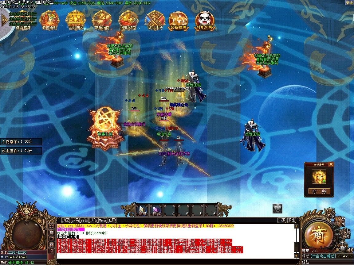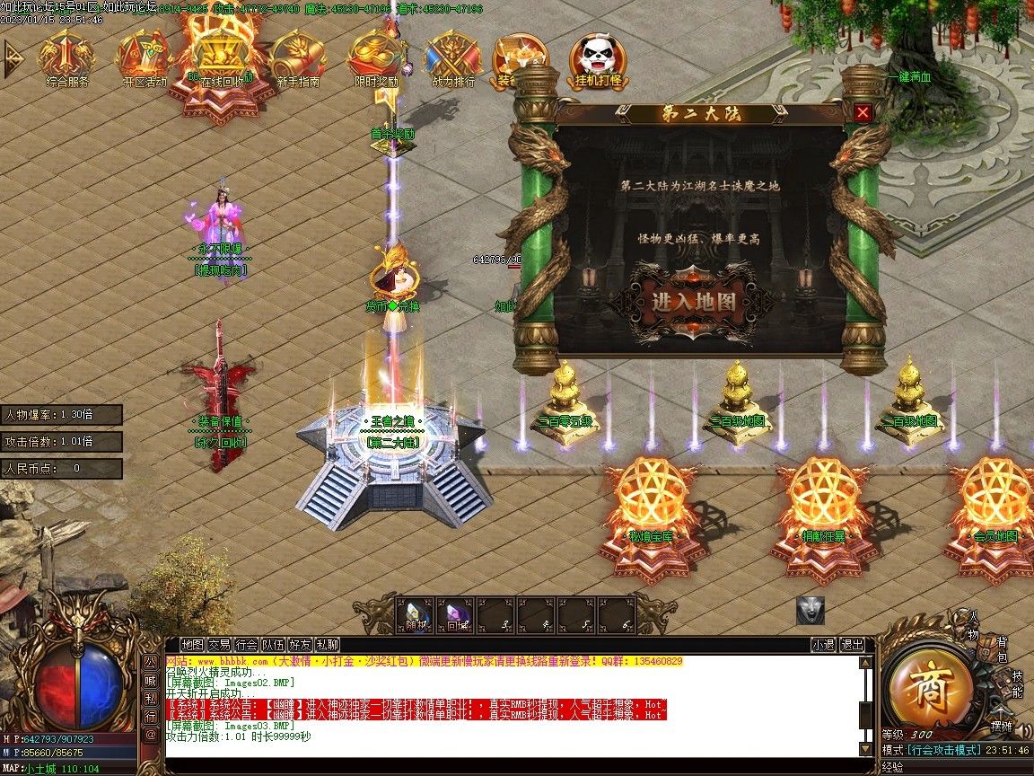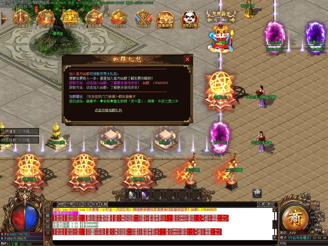虎年主题的版本来了,霸王虎游戏中的虎元素还是比较的多,NPC怪物等等都是各种虎,光柱也是新的老虎抱金的特效,总之都是有点虎!为了方便新手游戏,新手去可以不绑定WX,可以直接使用回城石传送到土城的安全区。