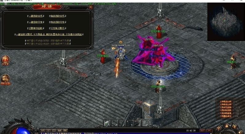 文字介绍:新幻想沉默是改编自17年魔兽幻想版本,版本集暗黑,迷失,专属多元素为一体(拾取鉴定,宝宝,装备地图),本服怪物较强,有时候不可硬刚,注意★★看功略★★!(攻略在服务端内有),专属暗黑 超级耐玩 没有耐心的 请勿下载。特别提示:新手武器自带20点攻速,而且可以通过商城购买卷轴进行攻速强化。