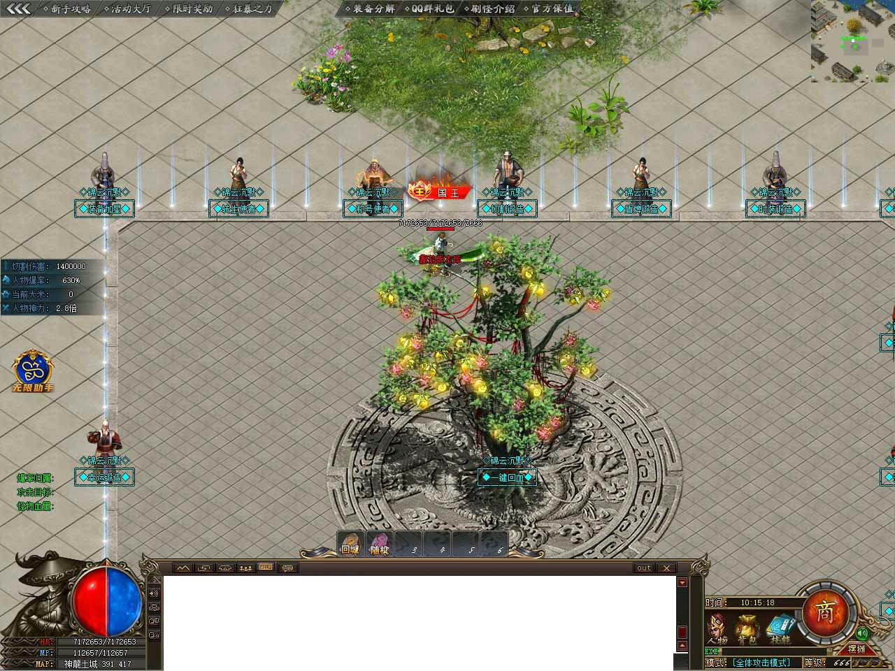 锦云沉默神魔升级系统,神魔最高10级,100%成功,穿杨:忽视防御 + 1%,需要100万元宝+50个锦云之火。强化:攻击伤害 + 1%,需要100万元宝+50个锦云之火。精准:暴击一击 + 1%,需要100万元宝+50个锦云之火。强身:伤害减少 + 1%,需要100万元宝+50个锦云之火。护体/@护体:体力增加 + 1%,需要100万元宝+50个锦云之火,所有属性全部10级可领取,领取神魔·之体|249#爆率提升+200%^249#打怪切割+10000。