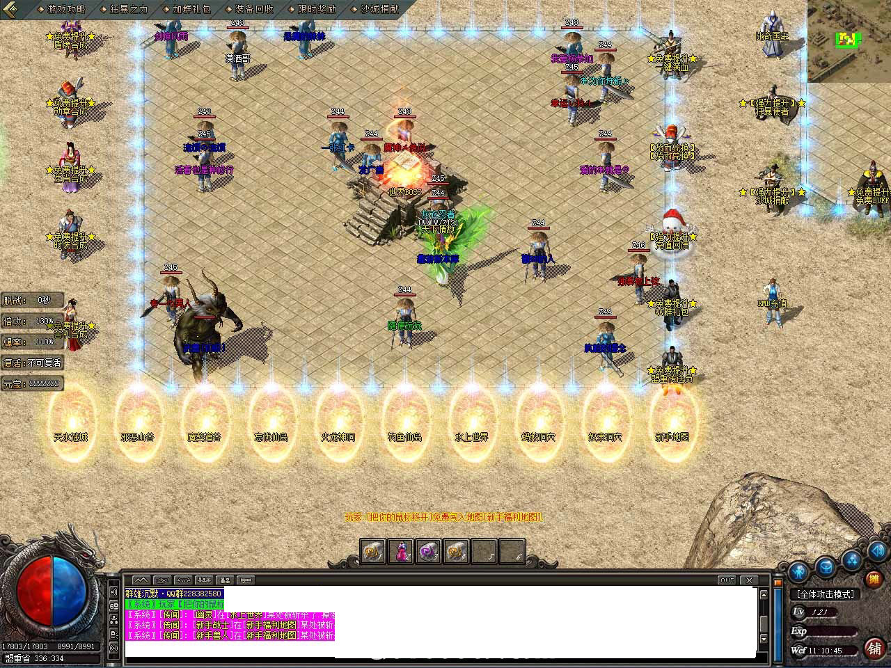 版本说明:新手上线先领取【QQ群礼包】获得随身泡点以及开荒装备道具,本服推出了三种副本,骨灰玩家每天可免费领取三种副本令牌各一枚。建议先领取令牌,等待自身强大后再进入会更有效率!(副本在土城左下角)。