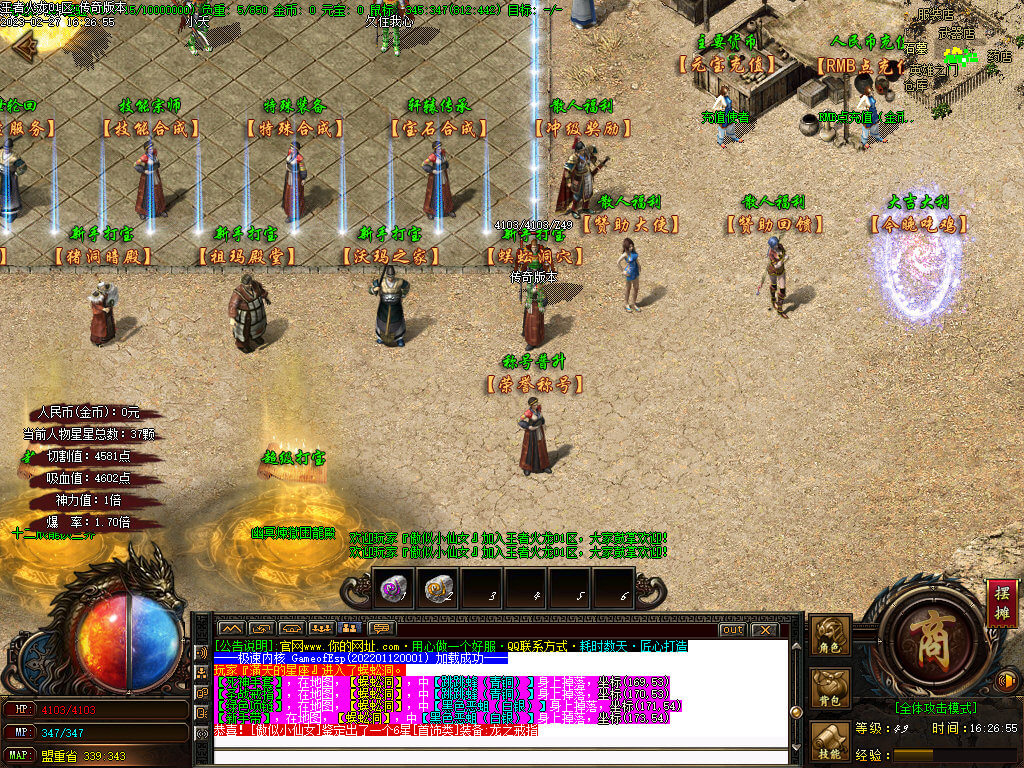九转+63主要怪物新手BOSS.守护神.轩辕散人专属BOSS 随机刷新
