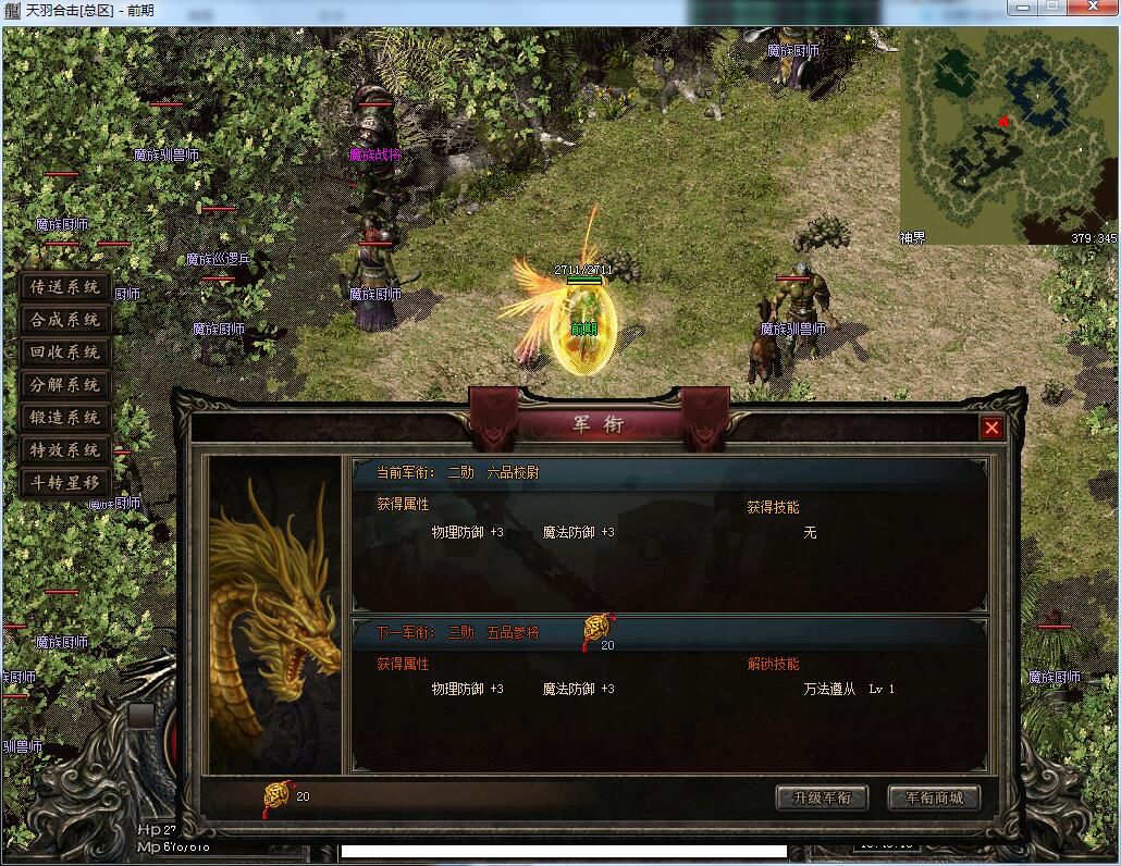 1-5级军鼓:可在比奇城左下边城门口的客栈合成,具体查看天工巧匠! 48级佩戴