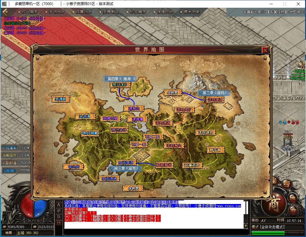 6.骰王地图.新区必抢.此图只开放3个小时.每半个小时刷怪一次.每次50只.爆率超前.材料多多.升级佩玉宝石更快人一步..