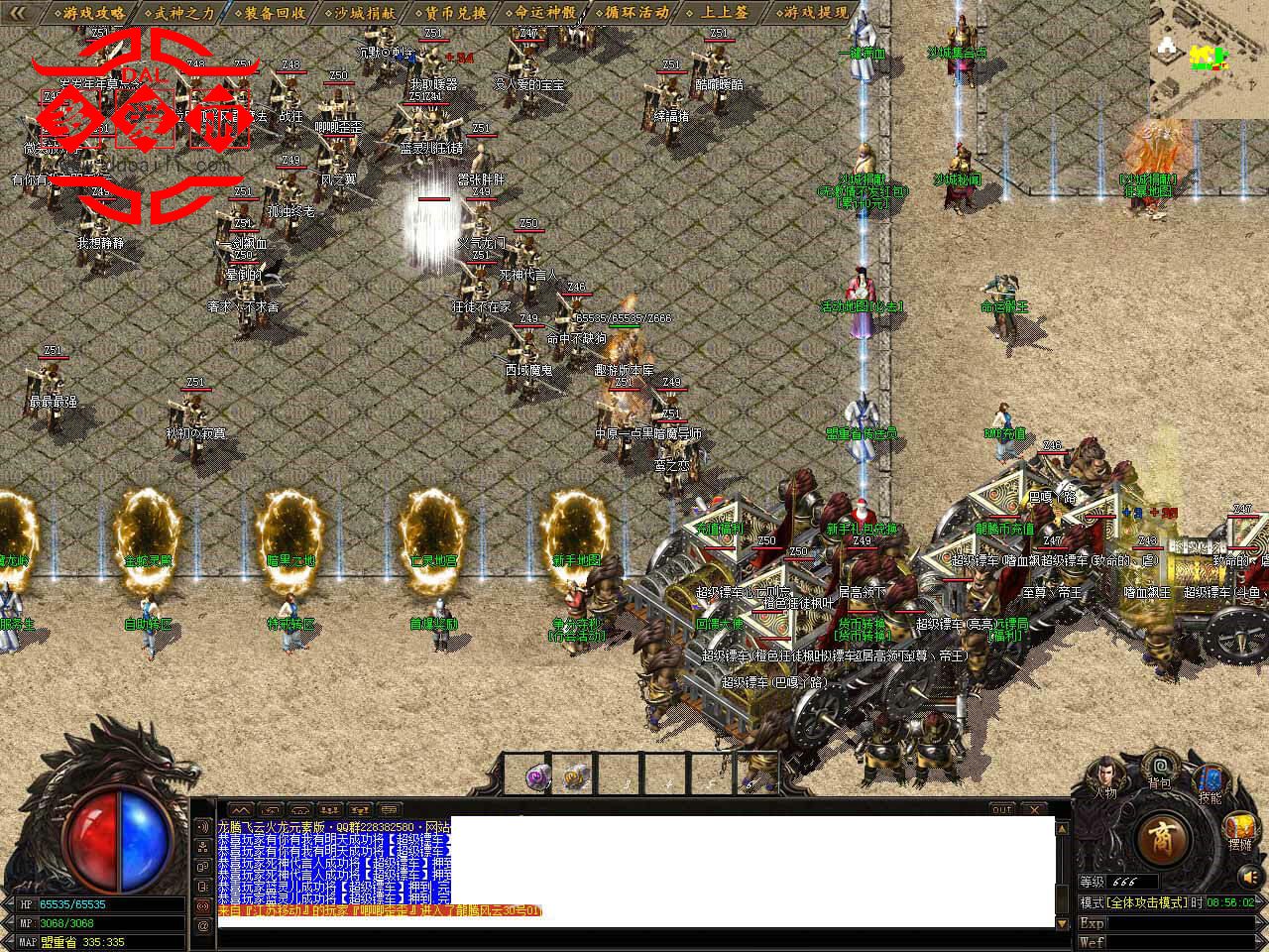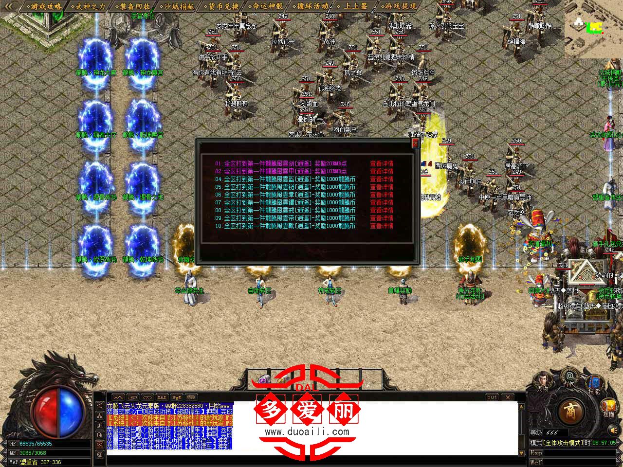 提示:[天生有命]爆出:、通天之路传送卷、龍腾腰牌[人]、无字龍珠[人]、素神石、终极装备,刷新所有地图,看脸爆率。