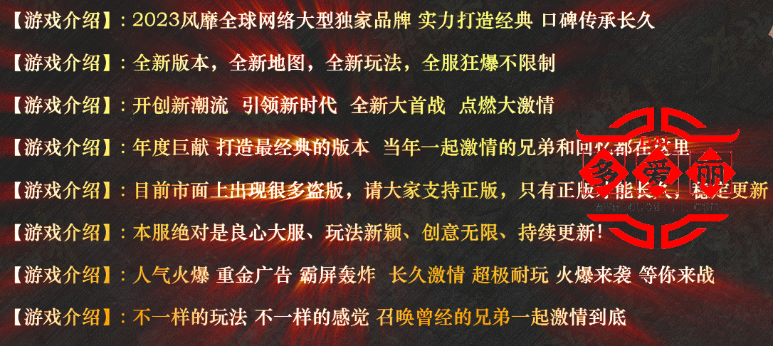 7,本站提供的资源来源网络收集或网友发布到本站,仅供学习研究之用,有bug正常(比如一个装备不能合或者不能回收、地图不全、缺少插件或角本......),只要能进游戏就算正常。你下载的资源是无售后 无售后 无售后的,不能接受的请勿下载。