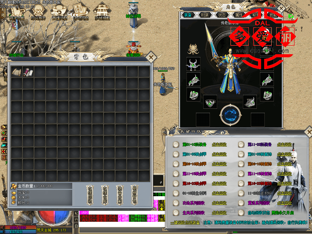 荒天专属神器新GOM引擎带假人光柱主角光环,每个大陆为一个界均有专属BOSS神器转生装备以及专属材料需要自己探索【荒天剧情专属单职业六大陆海底深渊端_神阁远古旧神_四王阵法】耗时制作,此端采用【新gameofmir】引擎,其他详情看下面介绍。