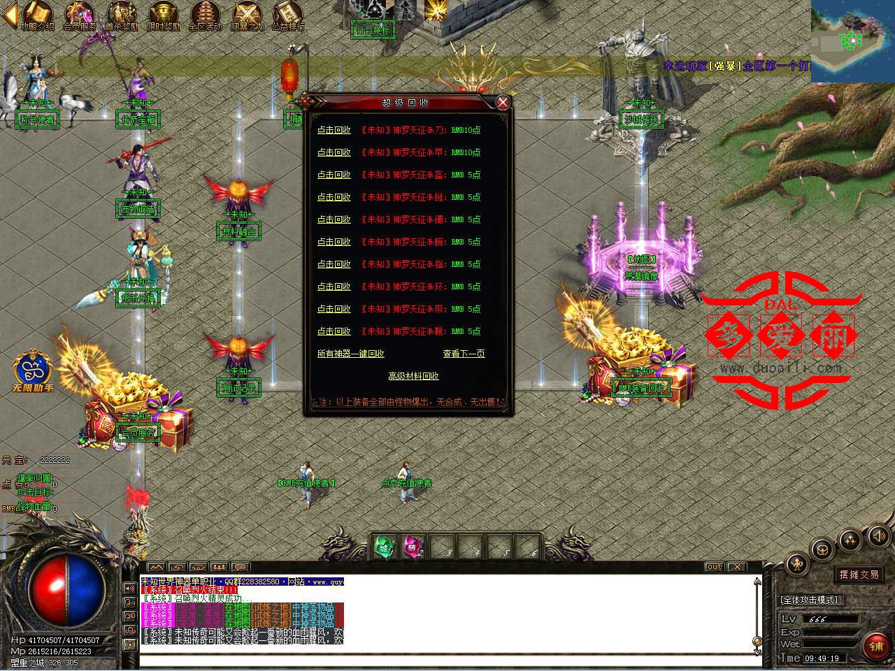【游戏介绍】:本服的神器,复活等装备全部靠打!完全看自己运气。