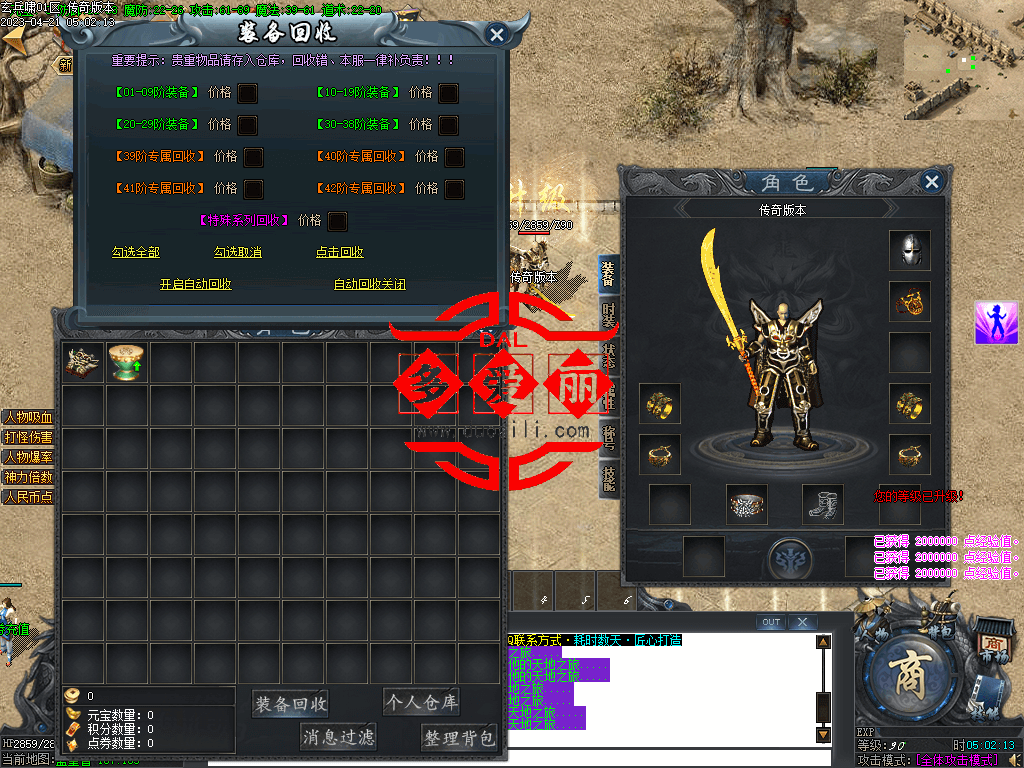 点券和元宝从怪物身上有几率出,属性激活称号立即生效!