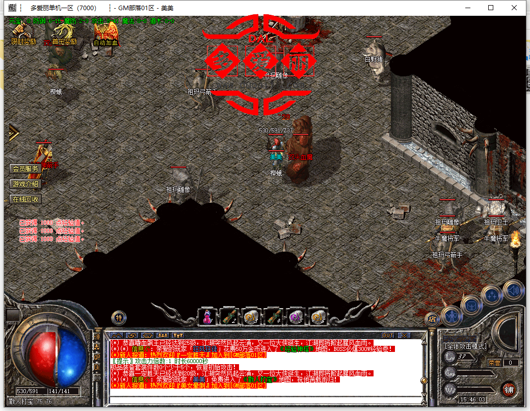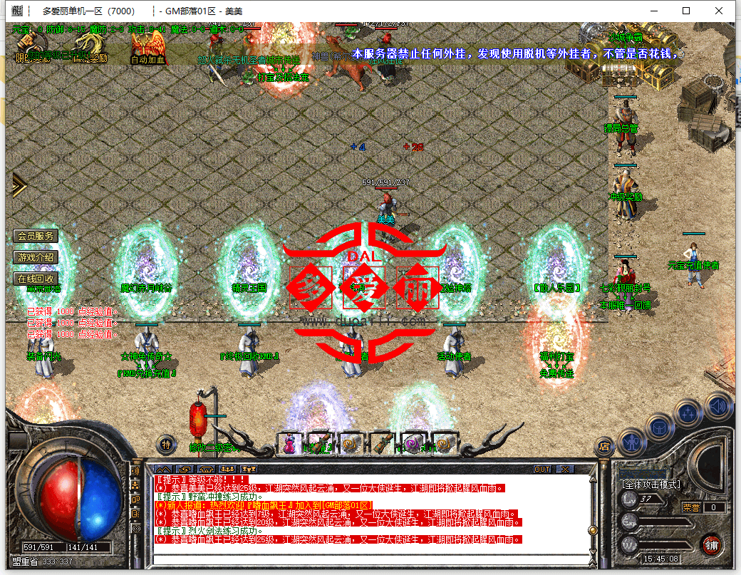 【特色一:本服所有地图达到条件全部可以进,打怪嗷嗷的真正散人天堂】