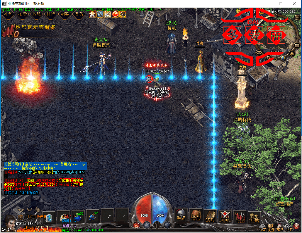 狂暴:安全区神魔模式最上边开启 安全区最右边开启杀戮模式