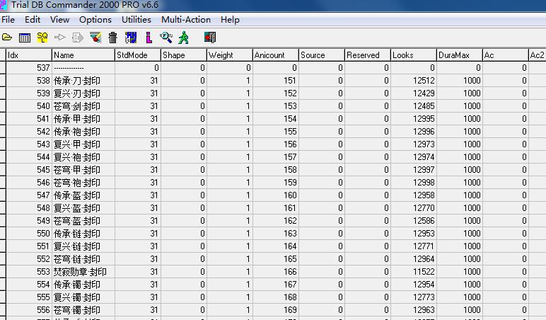 然后选择StdItems.DB,就可以查看得到版本中的所有物品和装备了!