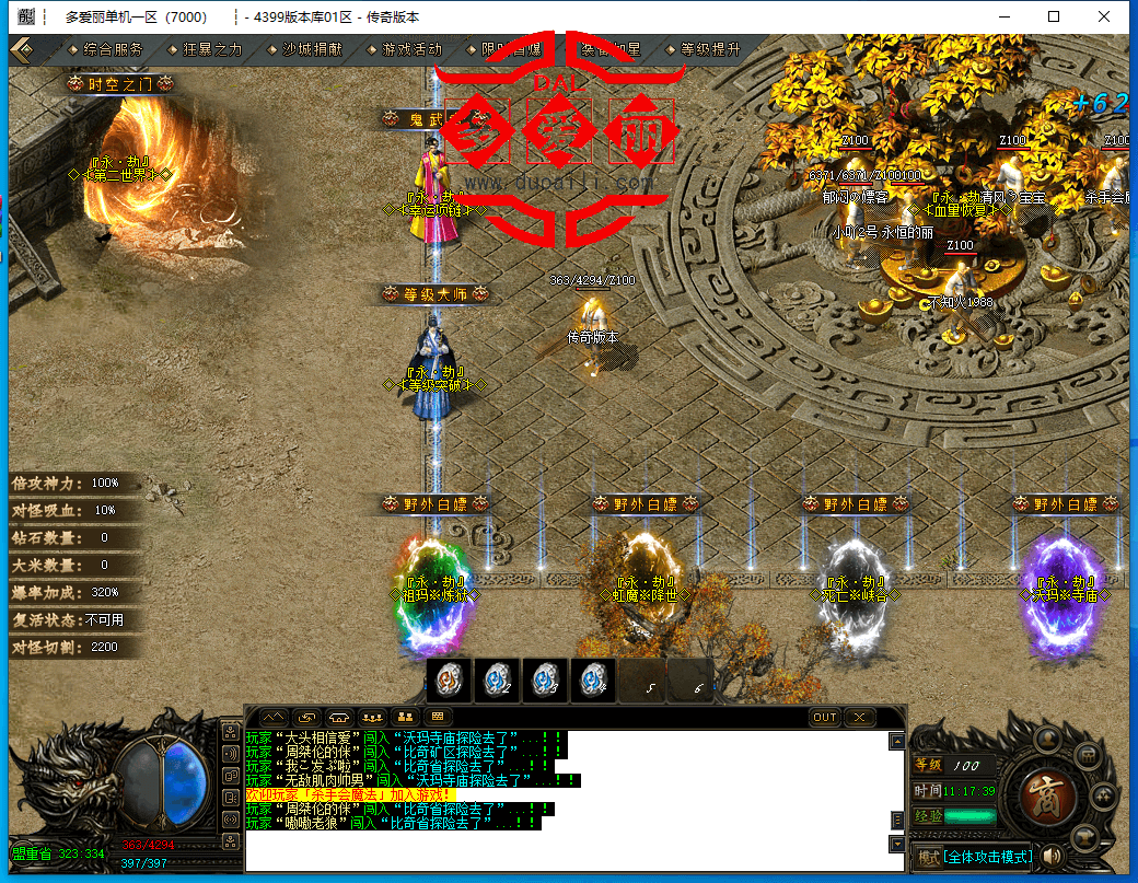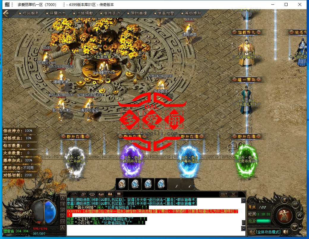 全服小怪,从桃园之门开始,每只小怪都有几率爆出一种专属装备,红怪高几率爆本地图所有专属