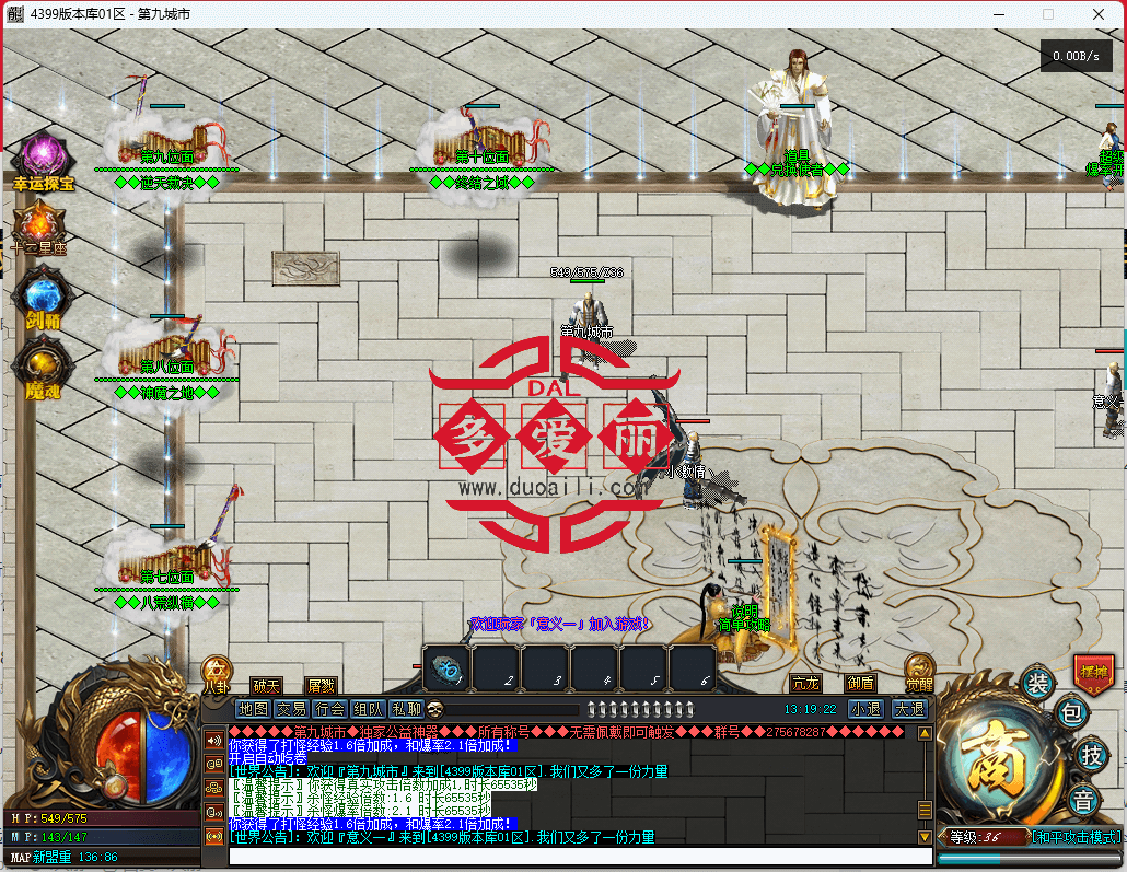 等级好升,人物满级为300级,300级后杀怪满足一定数量可重复获得大量RMB奖励!